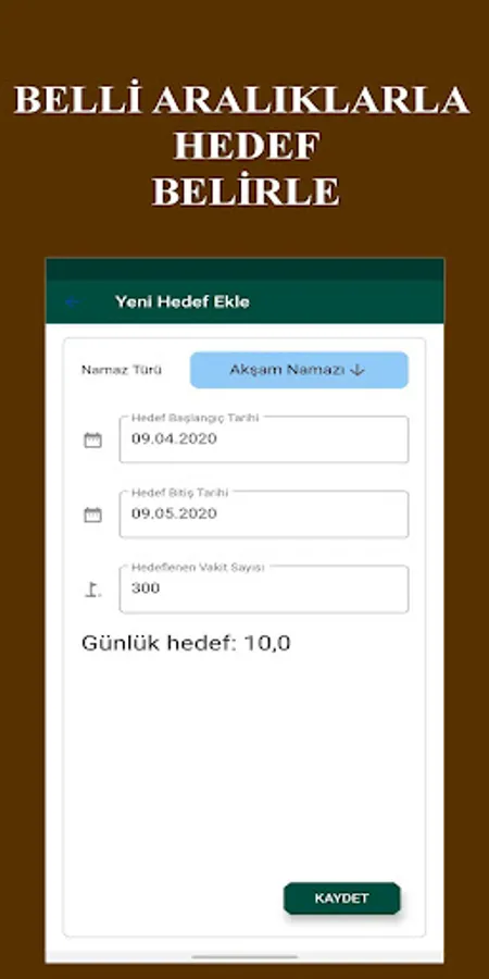 Easier and easier accident prayer tracking with the number of targets set in two date ranges.