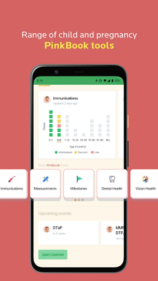 - Comprehensive health management features during pregnancy (NHS guidance, tests, kick counter etc) and childhood (Measurements, Vaccinations, Dental, Vision and Milestone etc)
