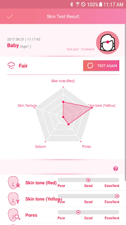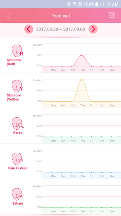 *Check the skin texture, skin tone, oil, and pore status with figures and graphs using the analysis service for skin status provided by the app.