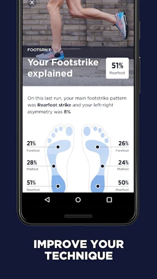 Deepen your understanding of how you run by capturing the most important factors: cadence, step length, foot strike, pronation and balance with personalized form reports and guidance.