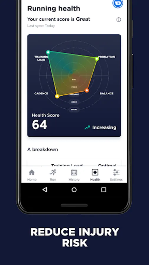 NURVV Run generates a unique Running Health score indicating how sustainable your running is, based on your training load and a range of other key running metrics. Learn about your level of injury risk, the key risk factors present in your running form and what you can do to reduce your risk of sustaining injury.
