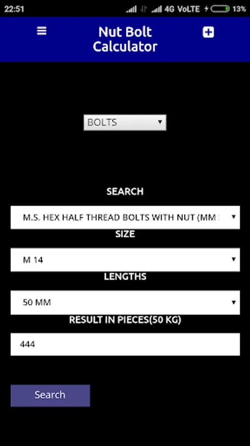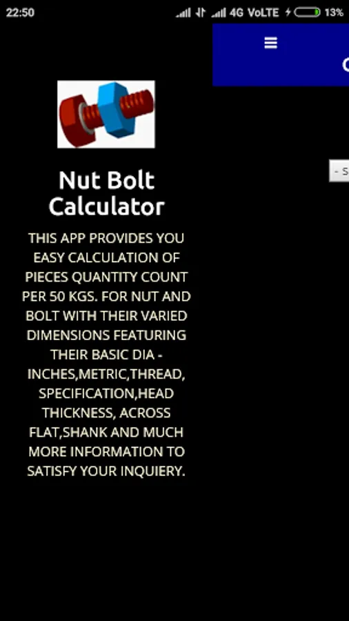 NUT BOLT CALCULATOR PROVIDES YOU EASY CALCULATION OF PIECES QUANTITY COUNT PER 50 KGS. FOR NUT AND BOLT WITH THEIR VARIED DIMENSIONS FEATURING THEIR BASIC DIA - INCHES,METRIC,THREAD, SPECIFICATION,HEAD THICKNESS, ACROSS FLAT,SHANK AND MUCH MORE INFORMATION TO SATISFY YOUR QUERY.