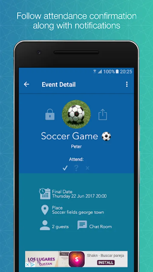 Chat with your friends and once you select the best options, the app let’s you follow the attendance confirmations.