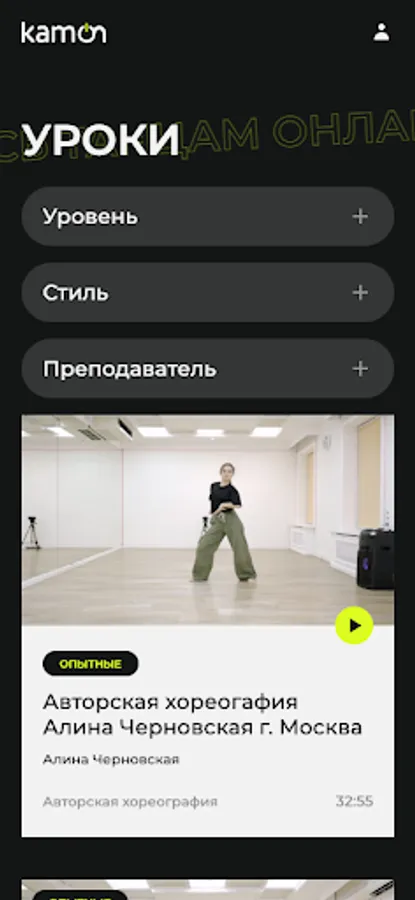 Kamon! - an online dance community by subscription, where lessons from top dancers and choreographers of Russia are released every week.