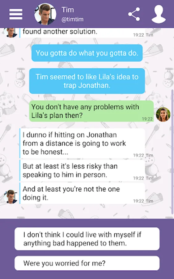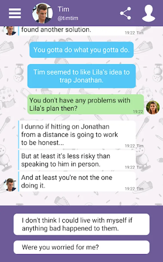 What you say in this chat game will have an impact on your story, but that's not all. What you advise your friends will change their story too. What will you tell Joshua who’s deeply in love with the high school fashionista? And who’s Lila’s mysterious lover? Should Lila be wary given what's happened to Nora?