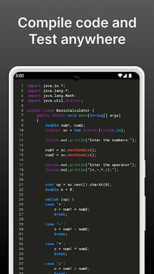 🔒Save and sync your code on your mobile or JDoodle account. With privacy controls, you decide who can access your code. Sharing is now a breeze!