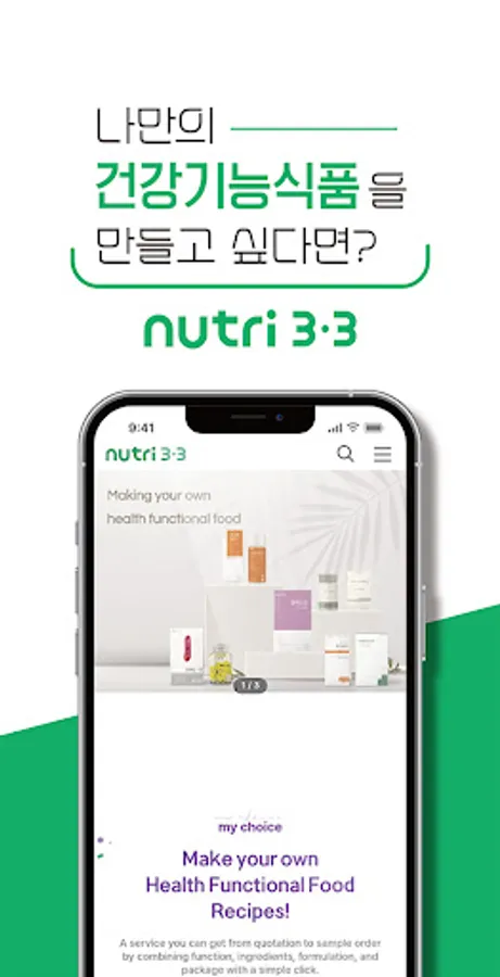 Nutri 3·3 is a B2B platform service that allows you to easily and conveniently manufacture health functional foods.