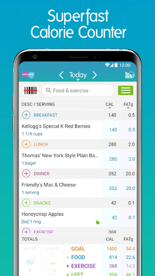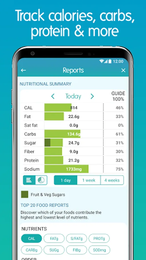 • Count calories and track carbs, sugar, fiber, fat, sat fat, protein and sodium