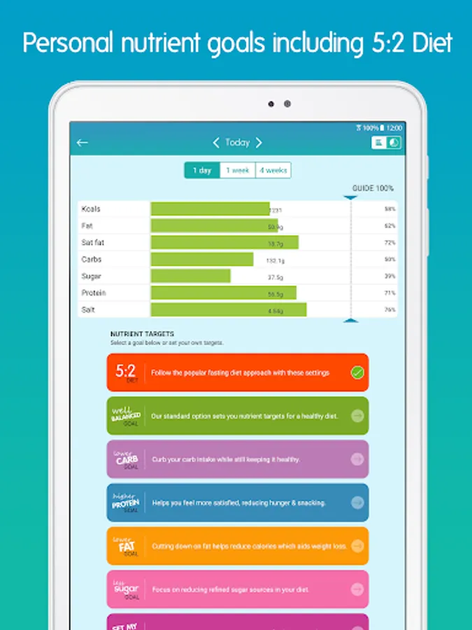 • Personal calorie deficit target (Nutracheck uses a BMR calculator & calorie calculator to set your allowance)