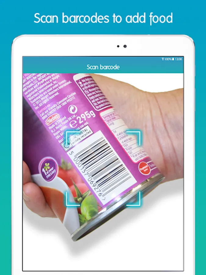The app is designed for easy calorie tracking, with a barcode scanner and minimal taps to add food.
