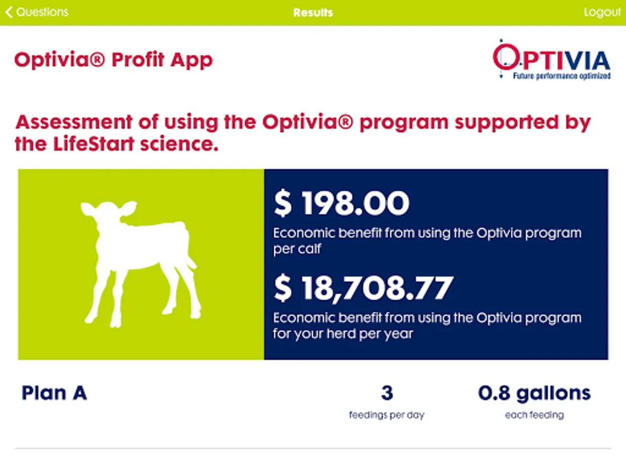 Optimize your future dairy performance with the Optivia® profit application. Calculate your calf feeding profitability, including long-term benefits from higher planes of nutrition.