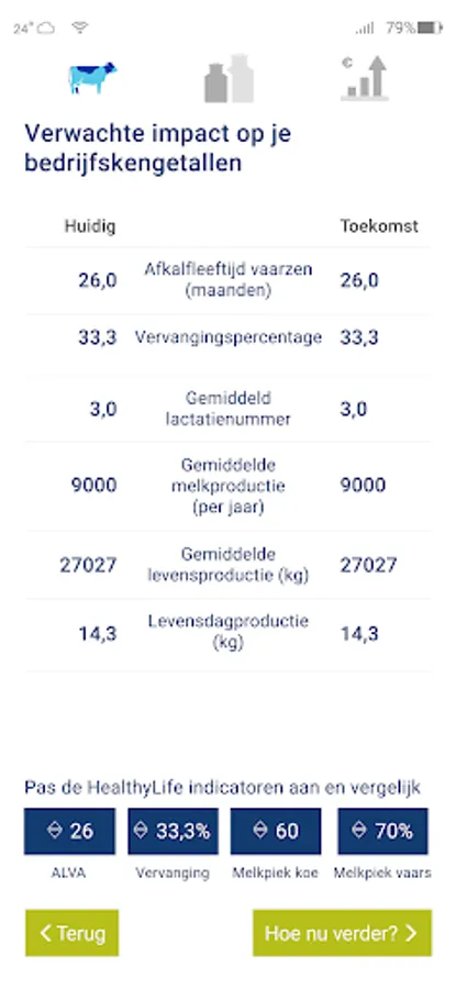 Determine your production goals and discover what is needed to allow your calves and cows to achieve an even healthier operating result. With the outcome of this app you can immediately start increasing the life-day production.