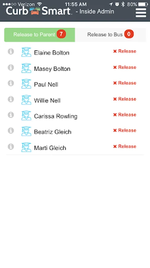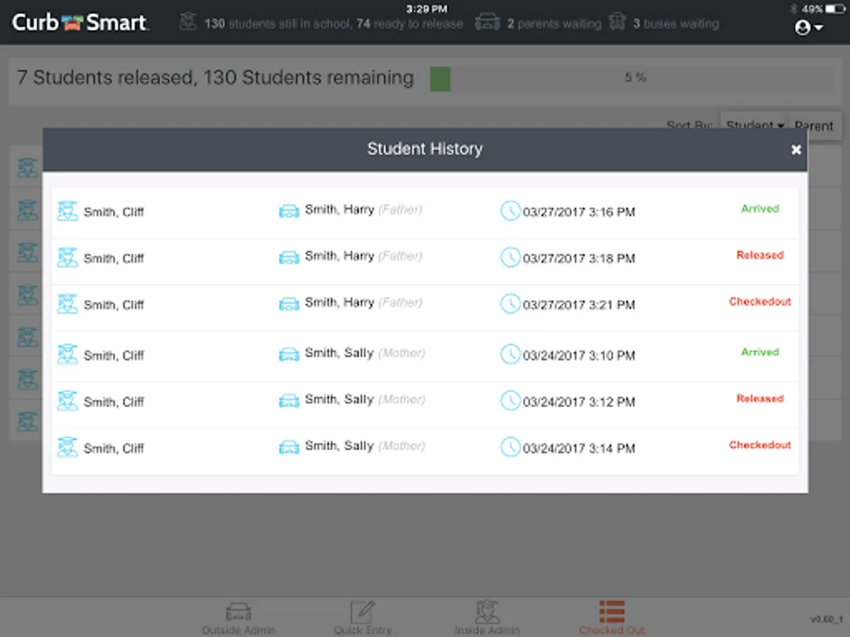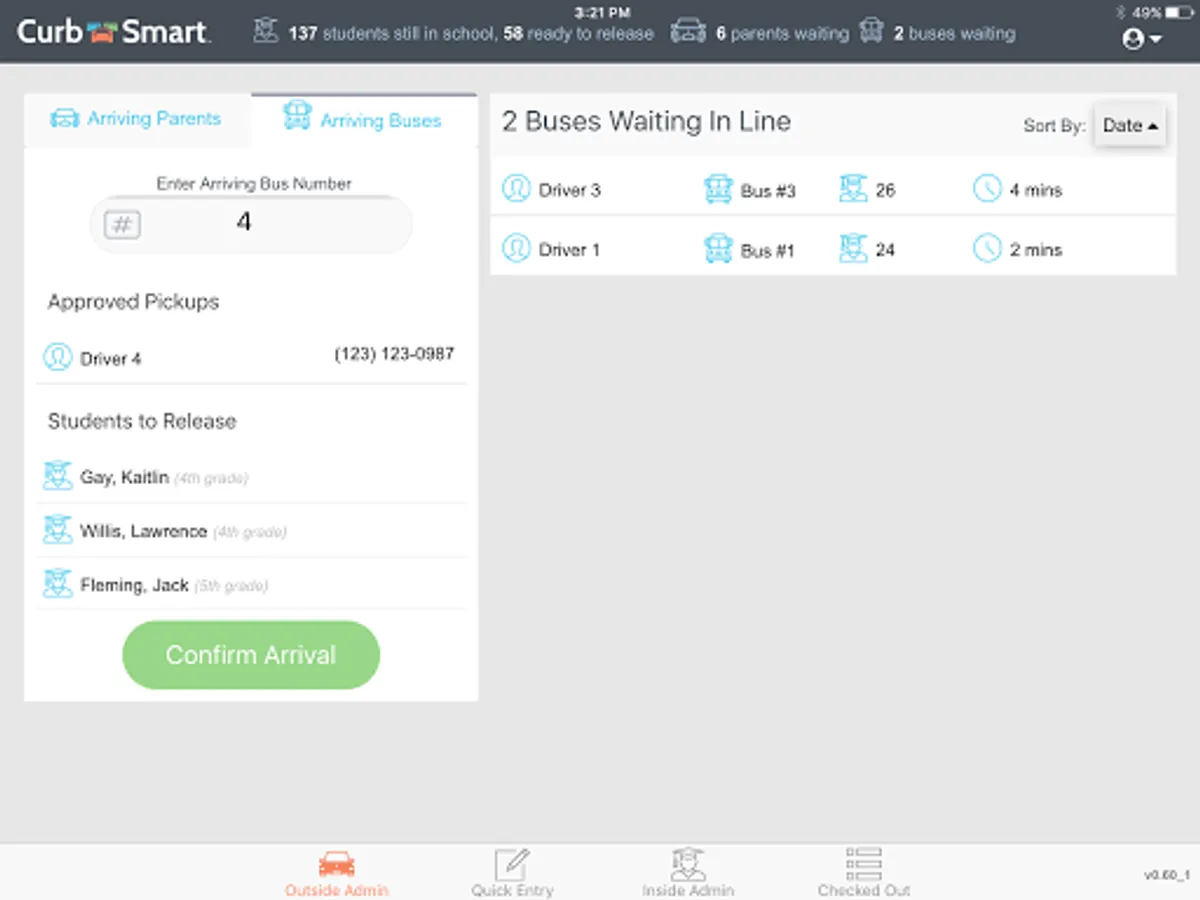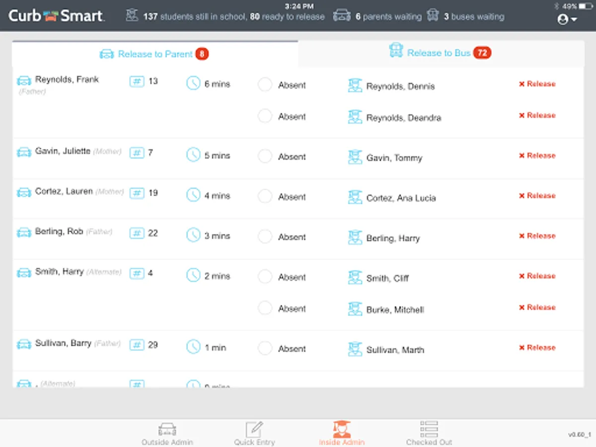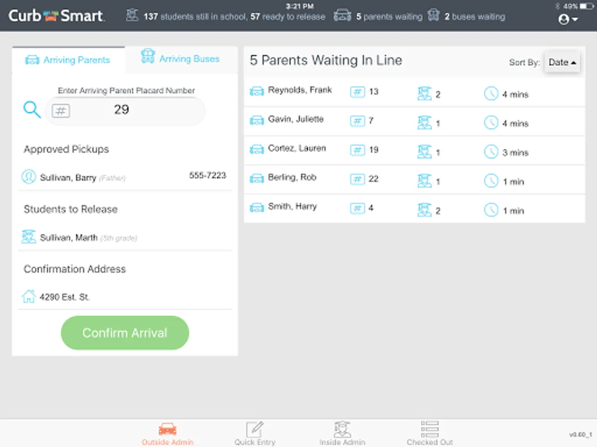 CurbSmart is the easy-to-use app that instantly synchronizes pick-up lane arrivals, allowing school administrators inside and outside to coordinate the organized release of students.