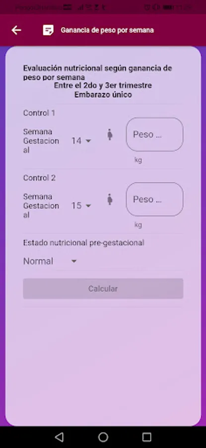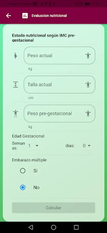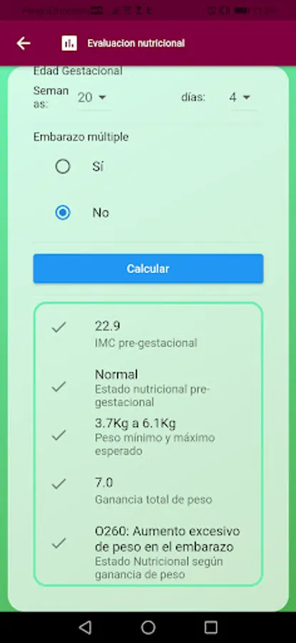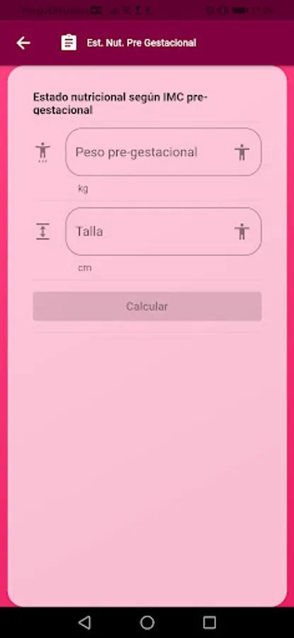 - Estimated pre-pregnancy weight, nutritional status according to BMI - pre-pregnancy