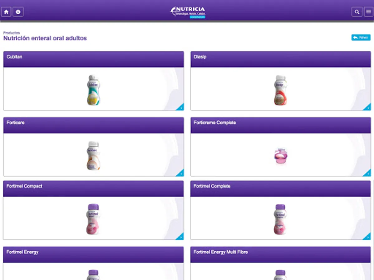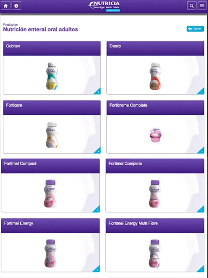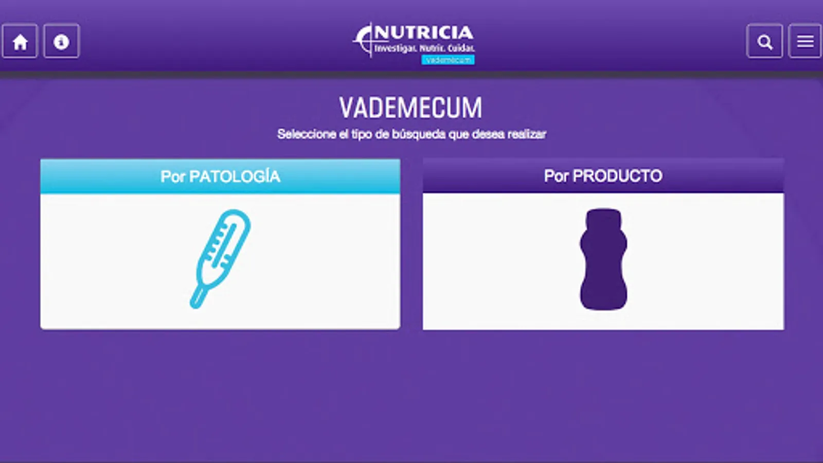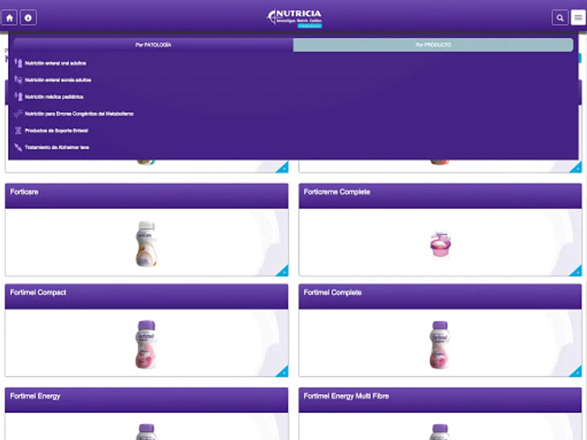 Full implementation aimed at healthcare professionals allowing consultation Vademecum of Nutricia products, including both adult enteral nutrition and nutritional support and metabolic indicated for pediatric patients.