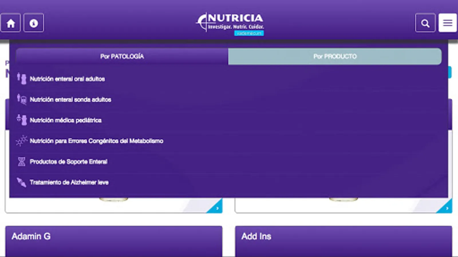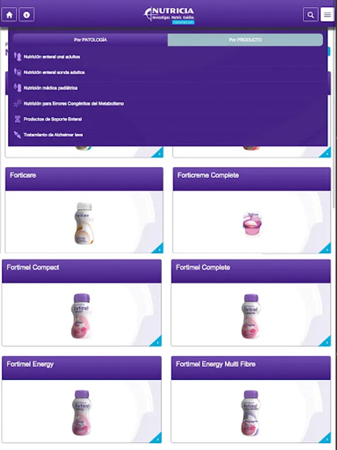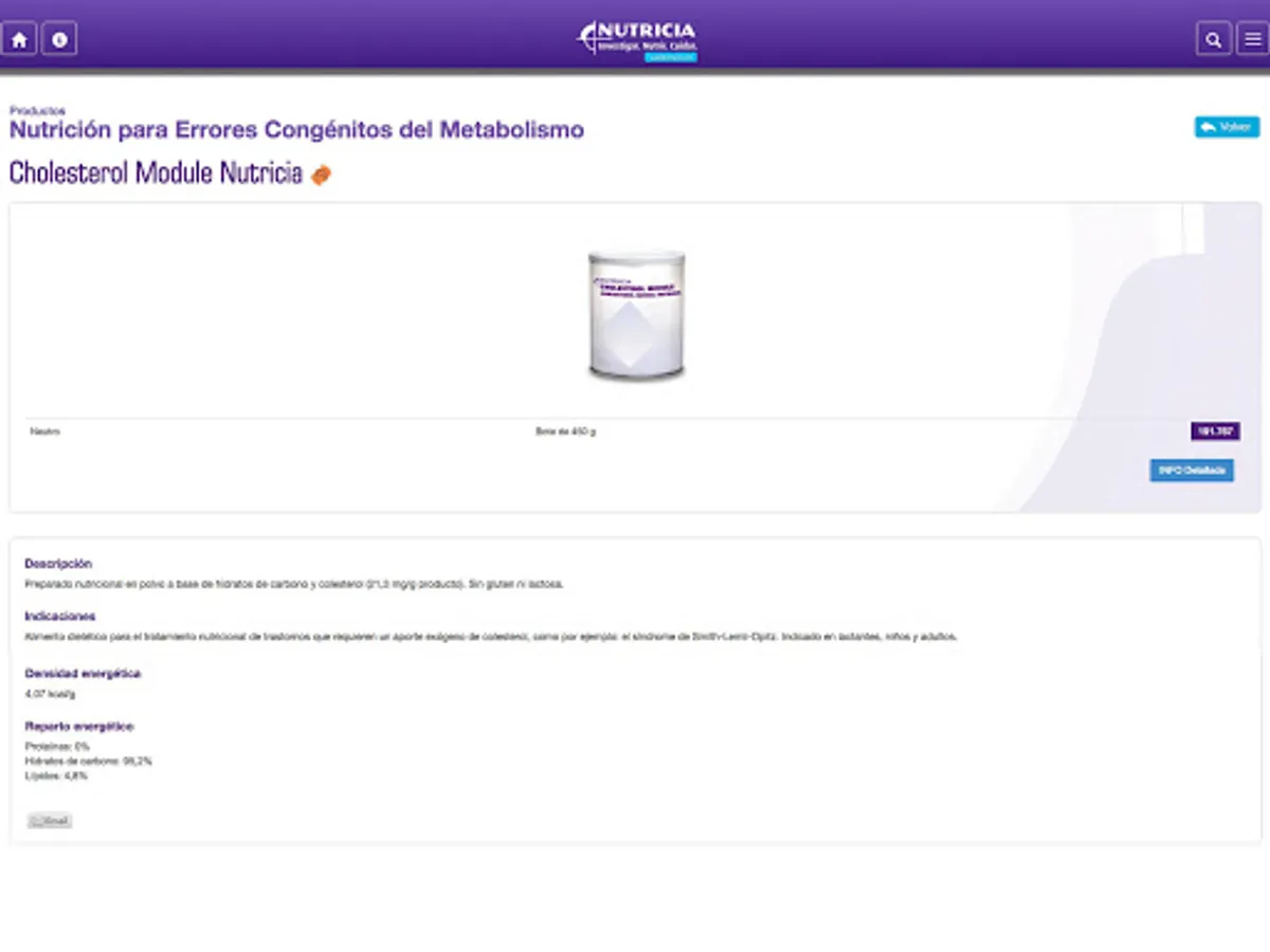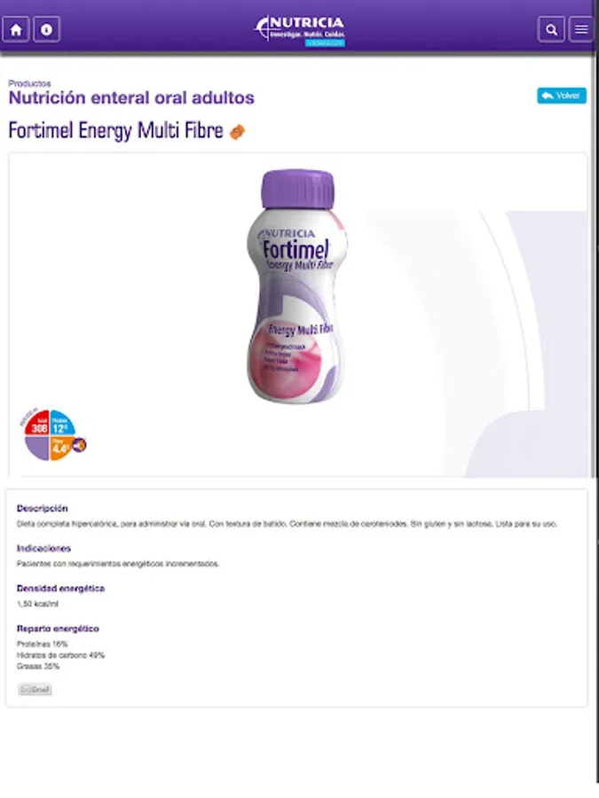 Full implementation aimed at healthcare professionals allowing consultation Vademecum of Nutricia products, including both adult enteral nutrition and nutritional support and metabolic indicated for pediatric patients.
