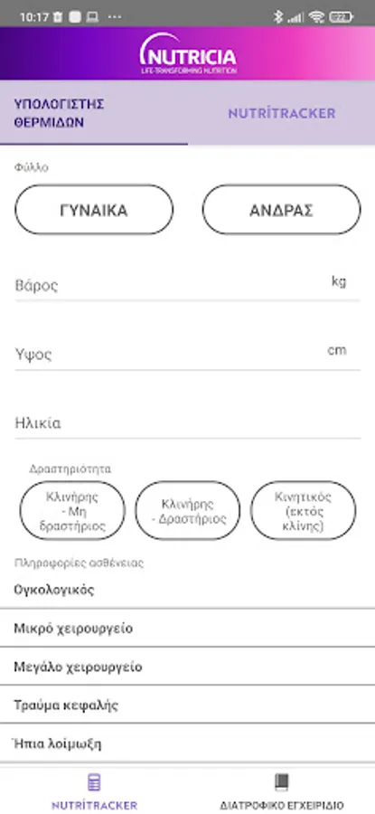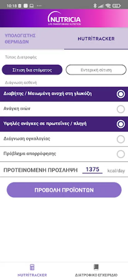 Initially, the amount of calories the patient needs is calculated according to his gender, weight, height, age, activity, illness and nutritional needs. The application then suggests the appropriate nutritional preparation (food for special medical purposes) for the patient.