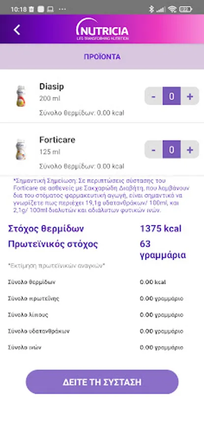 No information entered by the Health Professional will be stored in the application and Nutricia does not have access to this information in any way. Nutricia makes every effort to keep this application up to date, however some information may have changed. Always contact the company for up-to-date information regarding Nutricia products.