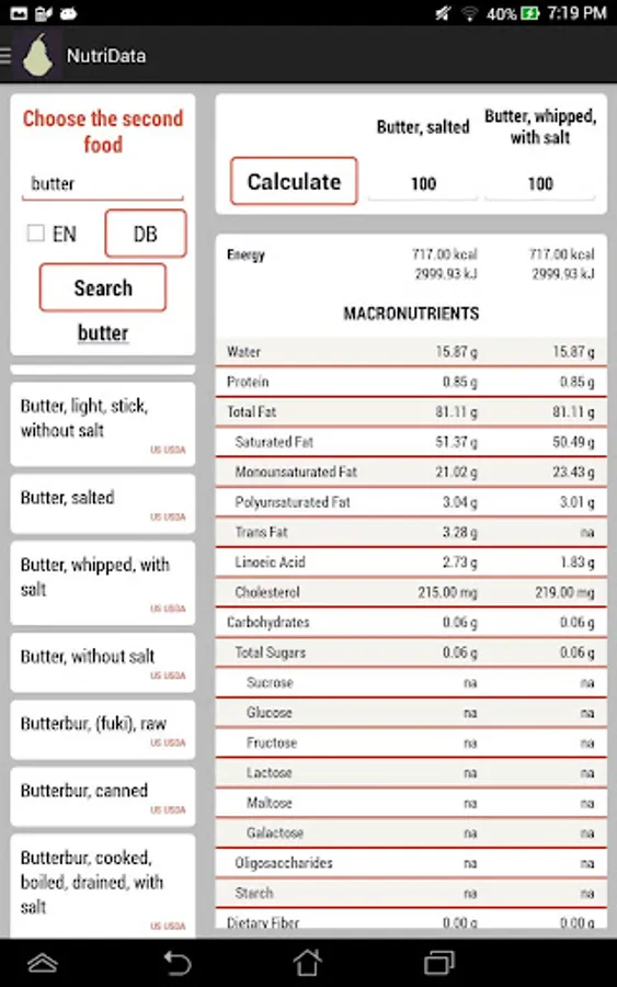 With NutriData, you have access to one of the largest database of nutritional information on Android. It’s all in your pocket - and never more than a tap away. Whether you are conducting scientific research or simply checking the facts on what you are eating, NutriData can help you.