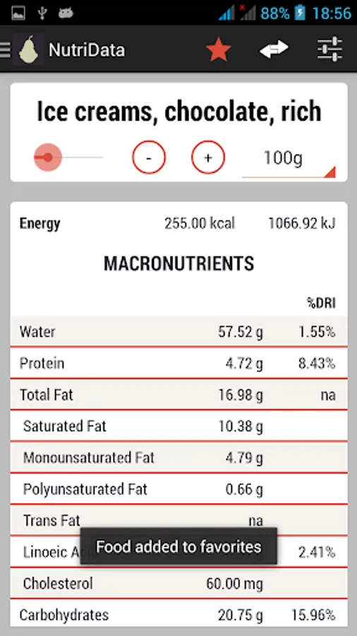 ★ See advanced data such as dietary fiber, caffeine content, lactose content and so much more*.