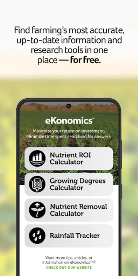 The eKonomics app puts farming’s go-to information resource in the palm of your hand. Access the most accurate information and research tools from anywhere at any time. The eKonomics app was designed to help maximize your farming investments and give you better insight over your nutrient management. Along with the powerful ROI calculators and tools, the app gives you easy access to commodity prices and the new “Ask an Agronomist” feature.
