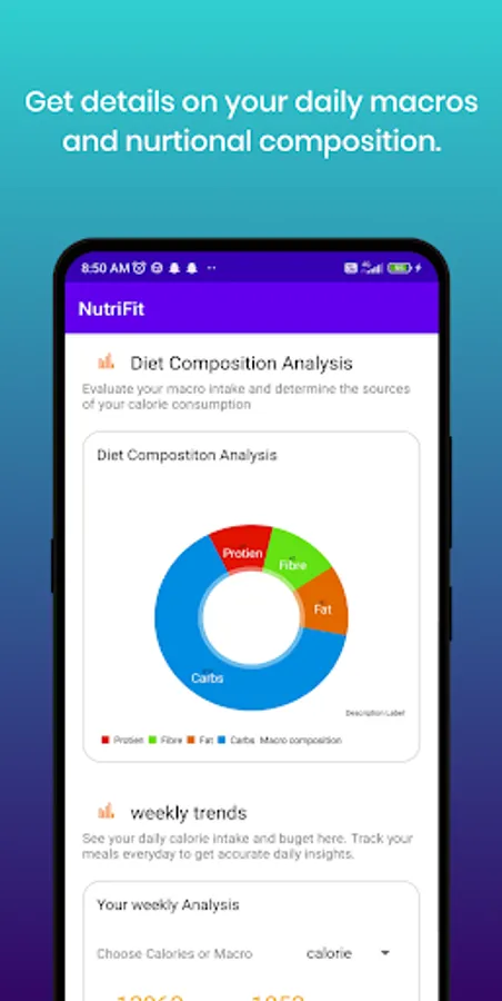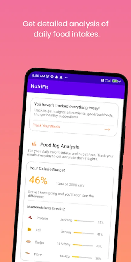 Macro Tracking and Analysis: Take control of your macronutrient intake with NutriFit's macro tracking feature. Set your desired protein, carbohydrate, and fat targets, and the app will keep you updated on your progress. Analyze your macros over time to identify trends and make adjustments for optimal performance.