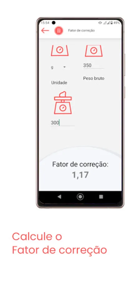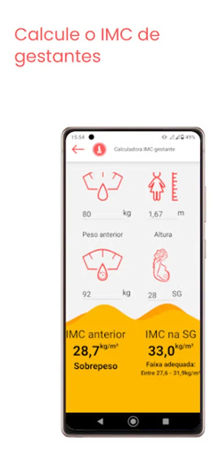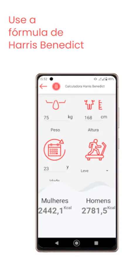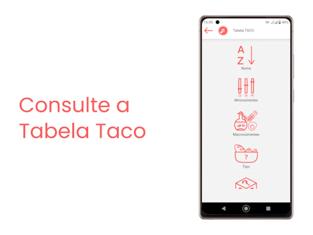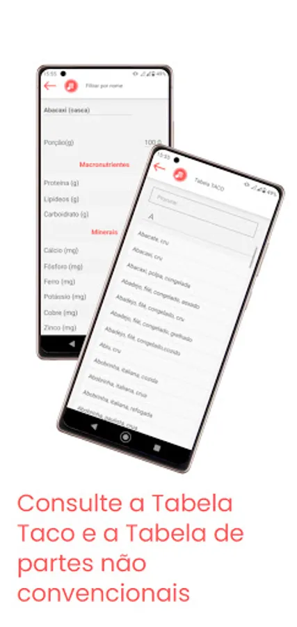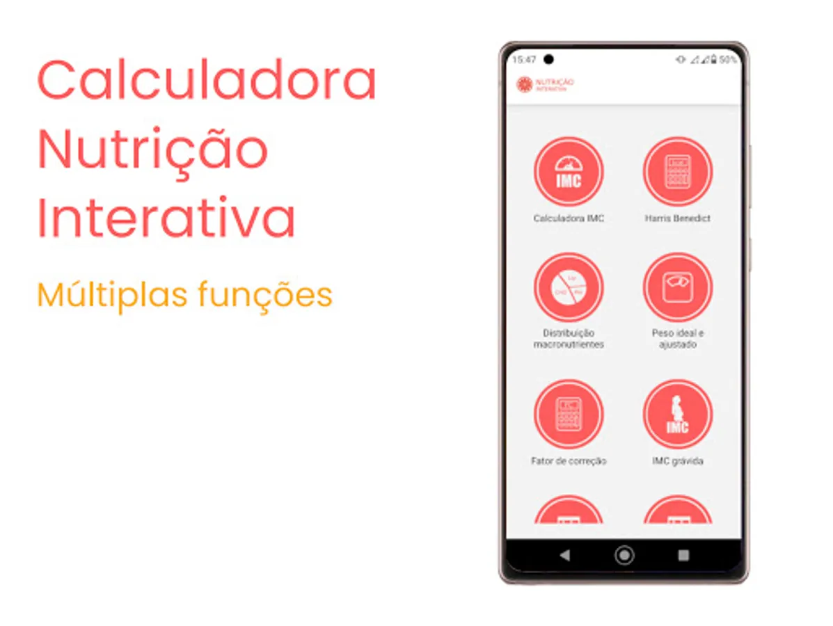 Calculate BMI, energy expenditure, correction factor, macronutrient division, TACO table and many more in the palm of your hand in a simple and intuitive way.