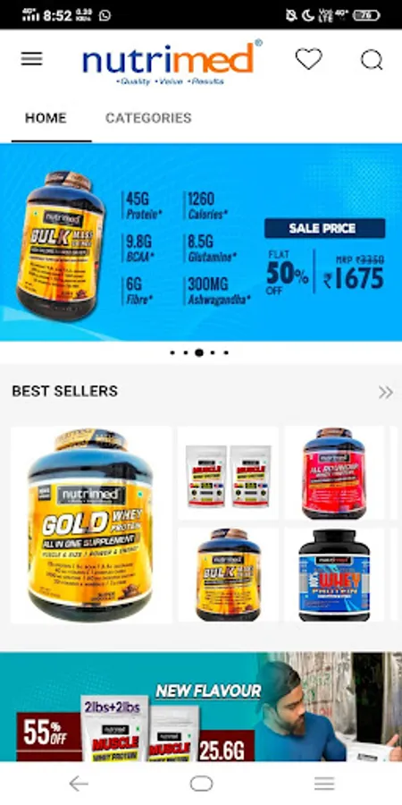 Nutrimed app is the easiest way to shop for your favourite protein supplements, sports nutrition products, vitamin supplements, bodybuilding supplements, protein powders, multivitamins and health care products. Be assured to get 100% authentic products across all categories like Protein & Vitamin Supplements, Sports Nutrition, Weight Loss, Muscle Building, Diabetes & more. Nutrimed guarantees authenticity of all the products. Get products delivered at your doorstep. Available payment options are Net Banking, Credit Card, Debit Card & Online e-Wallet. Free Shipping. Support your health and fitness journey with the simple and fast shopping app from Nutrimed Healthcare, India's No.1 online fitness supplements brand.