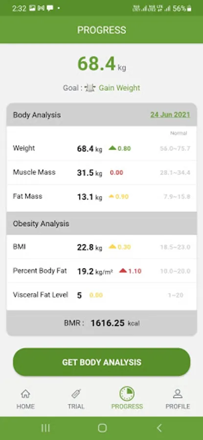 Step 2: Chose your target (Weight loss, Weight Gain, Remain healthy)