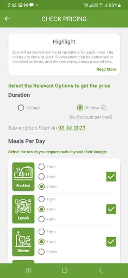 Step 3: Subscribe to a desired dutration (15 days, 1month)