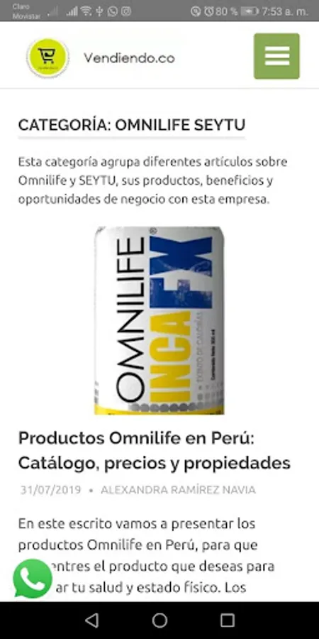 - WhatsApp contacts with Omnilife businesspeople to answer questions about products, purchases or affiliations.