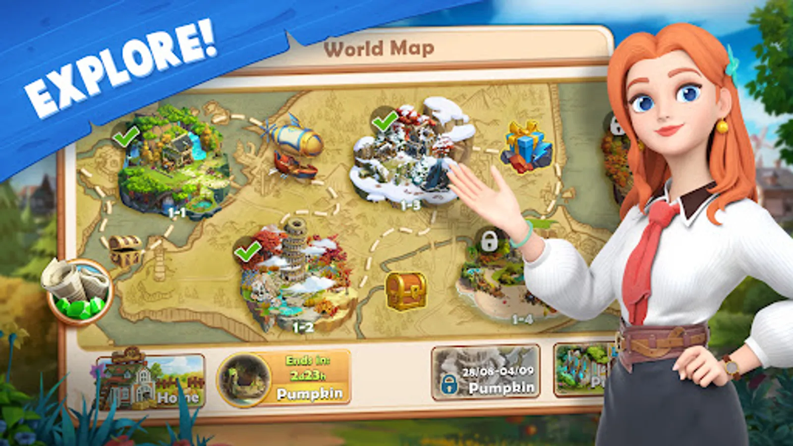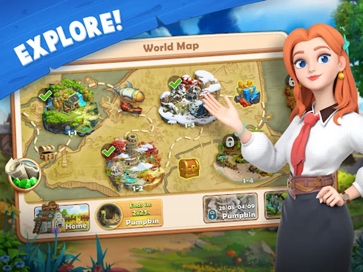 Embark on an incredible adventure through space and time! Explore various locations around the world, clear obstacles, and solve puzzles along the way. Build and decorate your farm house. Complete tasks to restore historical artifacts. Follow an exciting and interactive storyline. Unravel interesting facts about historical figures like Nobel and Van Gogh. Make your mark and change history!