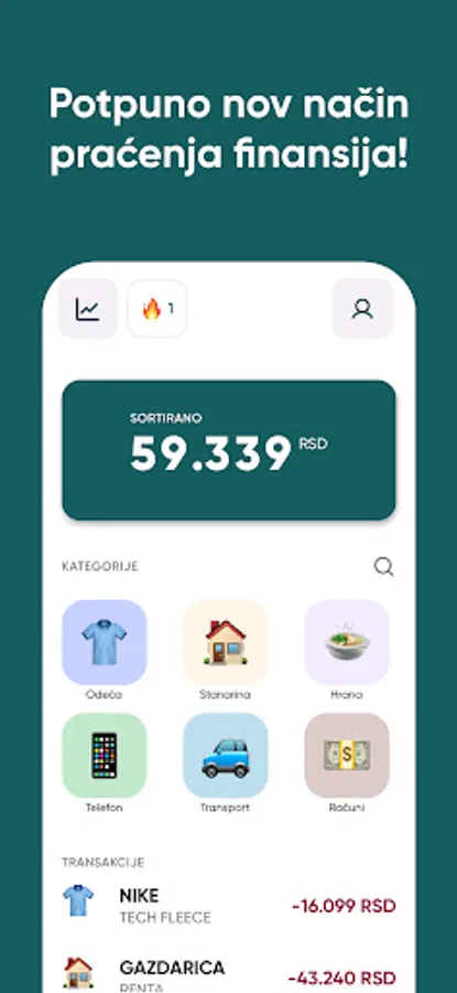 Sortiraj transakcije - Organizuj troškove po kategorijama kako bi postao svesniji na šta najviše trošiš.