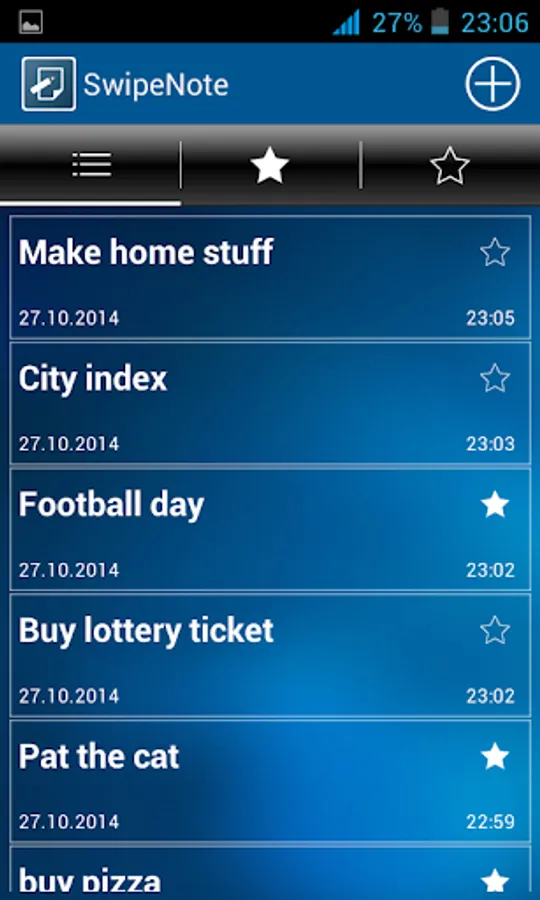 SwipeNote - is notepad with the ability to mark notes as important/unimportant, then displaying them on a separate page or all together. Just create note and select its type. Later you can change it, for example, if you have already completed some task and don't want to show it in the list next to other important notes.