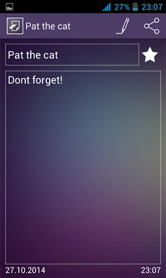 If you want to share your notes, you do not need to manually copy the text and paste it on the social networks, SMS, etc. You just simply select the desired note and press the share button in the top right corner!