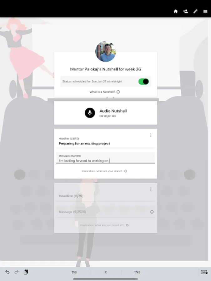 You can draft and edit your message all week long and set it to auto-publish next monday.