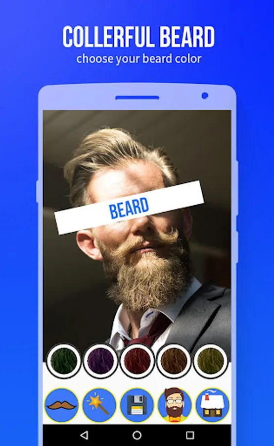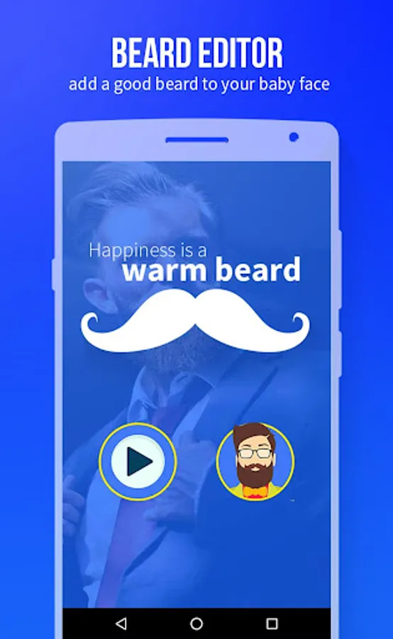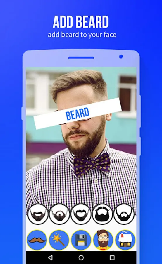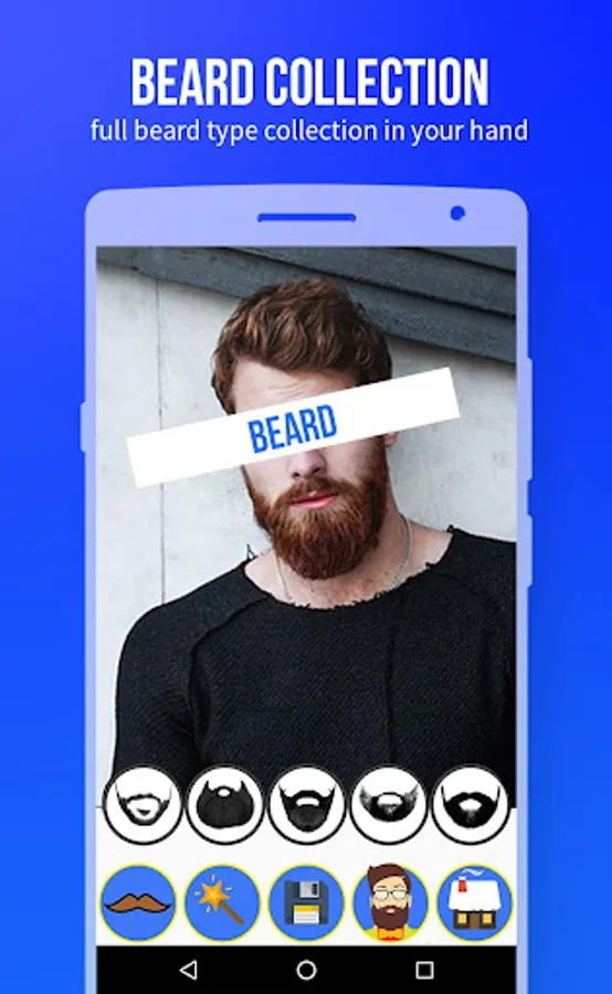 Beard & Mustache Photo Editor allows you to experiment with different types of mustache and beard and find the one that suits you the best.