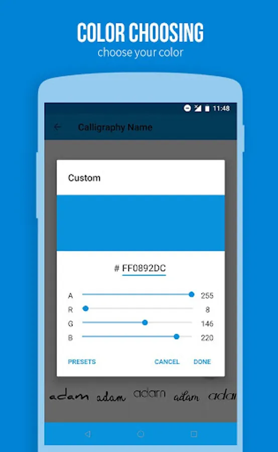 “Calligraphy Name” is a simple and fun way to create calligraphy art by using these amazing calligraphy fonts. You need not learn old-fashioned calligraphy writing text art to create your name in stylish text. All you need is to download and install our calligraphy lettering generator app “Calligraphy Name” on your Android device and leave everything else to it.