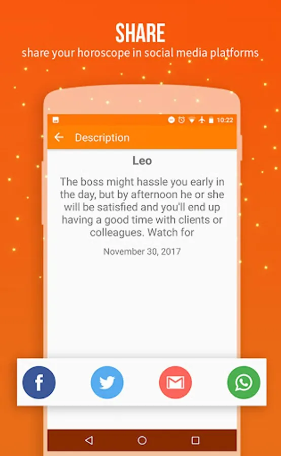 “Daily Horoscope” is a really great and a feature-packed astrology app. The app allows you to check your personal and professional relationships. You can easily discover your daily, tomorrow, weekly, monthly and love horoscope as well. You can find horoscope information and star sign of your family members, friends, and loved ones, it will help you better understand your relationships with others. Our “Daily Horoscope” app has information of all star signs including Aries, Taurus, Gemini, Cancer, Leo, Virgo, Libra, Scorpio, Sagittarius, Capricorn, Aquarius and Pisces.