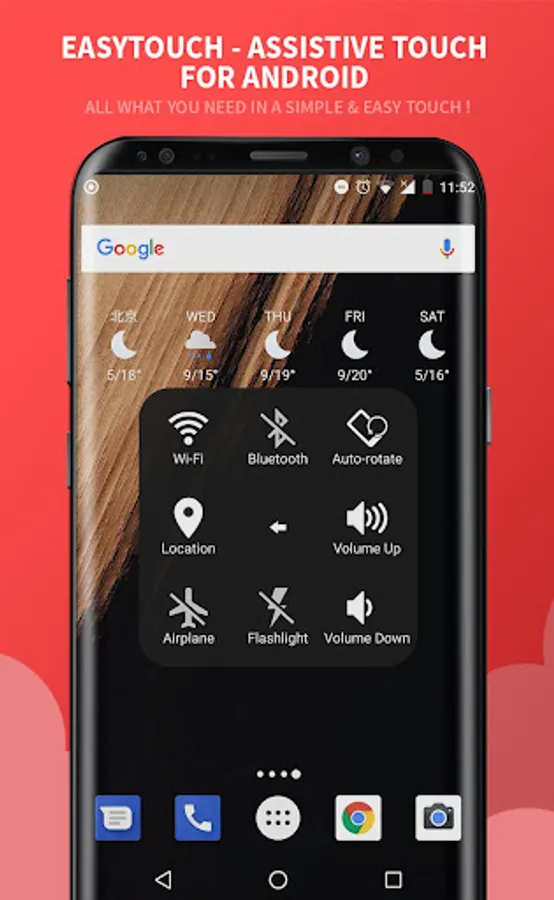 EASYTOUCH - ASSISTIVE TOUCH is really simple to use, when you’ll see the floating icon on the screen. Just tap it and a window will open up. From there, you can access your favorite apps, navigate your phone’s interface with back or home button, capture a screenshot etc.