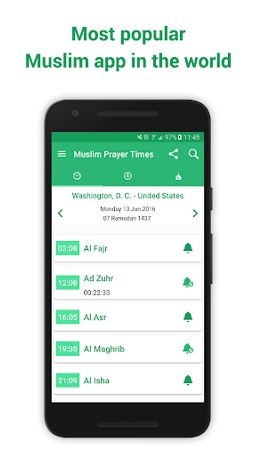 - Activate the notifications in order to be informed when it is time, so that you won’t miss any prayer.