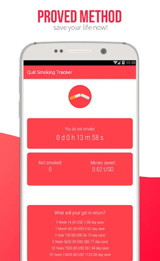 Quit Smoking Tracker gives you all the motivational stats you'll need to kick the habit because of its side effects. It’s a must- have app on your device if you want to stop smoking.