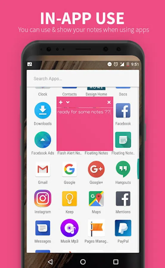 Well, stop your search and start downloading “Floating Sticky Notes”, an amazing quickmemo notepad app that allows you to write notes that always stay on top of all other apps so you can access them quickly at anytime. All stickers are auto-saved, and can be accessed through the app. To move a sticky note on this quickmemo app, just hold down on it and drag where you want to place it. Simple as that!