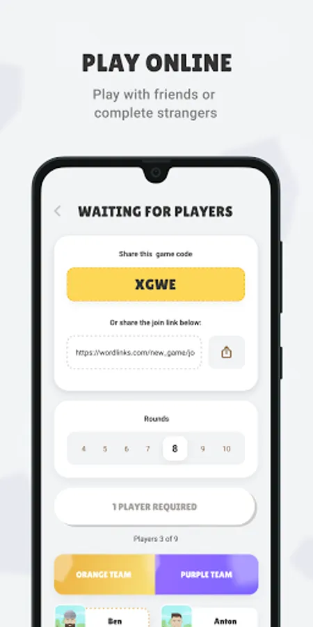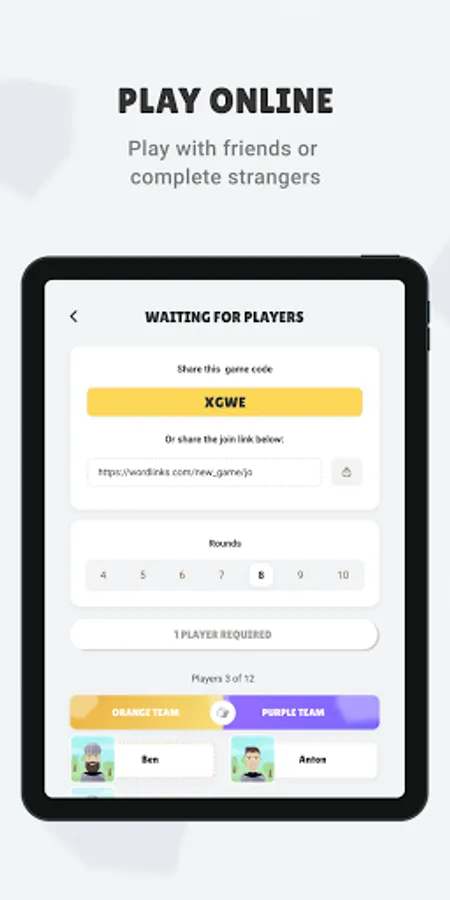 Word Links is a wordy brain game for 4 to 12 players where two teams compete by giving clues about secret words while the other team tries to decode those clues. This game will test the limits of even the most creative intellectuals! Everyone plays from the ease of their own phone. Word Links can be played live at parties in under 30 minutes or remotely over the course of days and weeks with remote friends, family, or strangers. To win, you’ll need to be able to think outside the box to try and correlate your opposing team’s clues and also come up with extremely witty clues of your own.