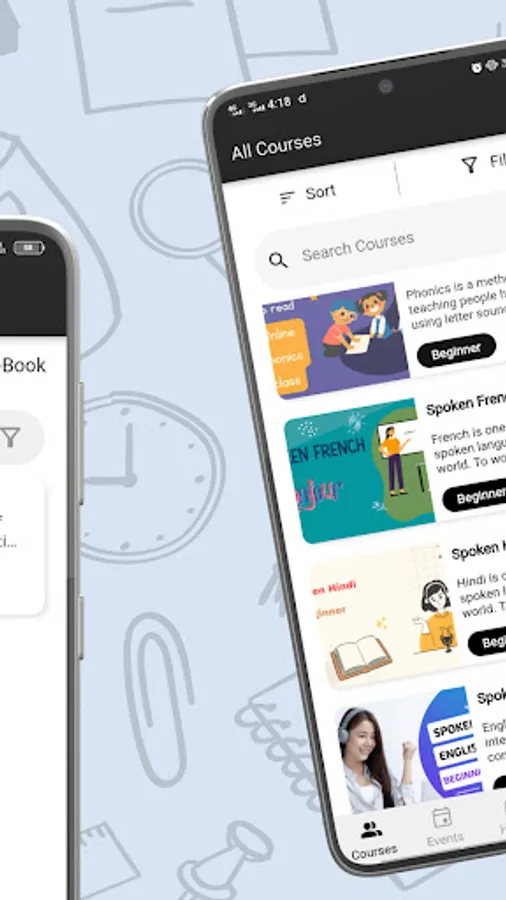 Step into a realm of endless possibilities as you browse through a diverse selection of courses and captivating events that await you. Our app redefines learning, allowing you to purchase courses and participate in events with just a few taps. Each course is thoughtfully curated, giving you the opportunity to learn from experienced trainers and industry experts. But that's not all – we understand the need for flexibility, which is why we offer a range of event options, from engaging e-books and podcasts to insightful webinars.