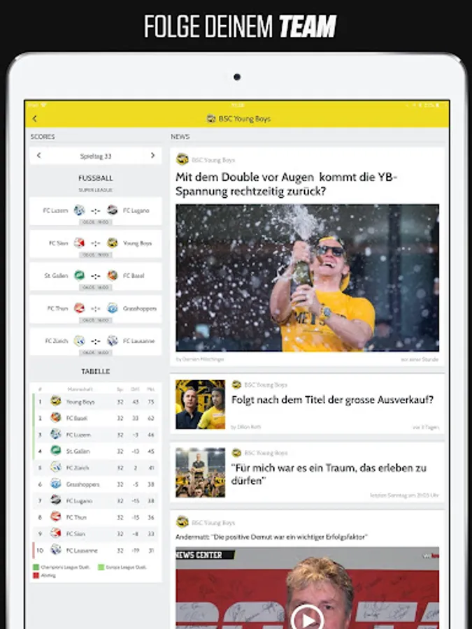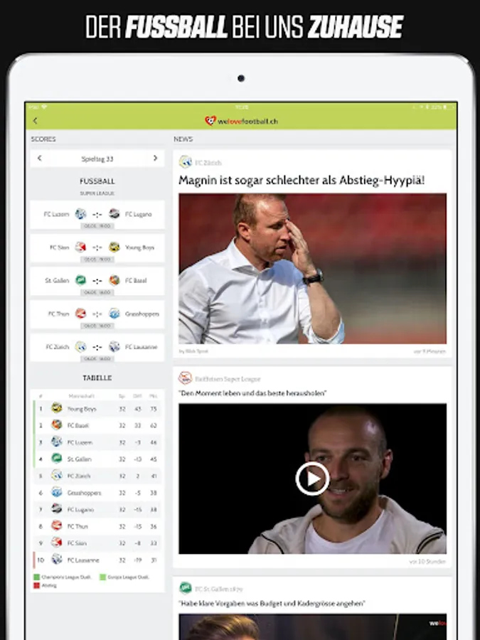 Soccer: Soccer live ticker for the top leagues, Raiffeisen Super League, Challenge League, Swiss Cup, Bundesliga, DFB Pokal, Premier League, LaLiga, Serie A, Ligue1, UEFA Champions League, UEFA Europa League, UEFA EURO, FIFA World Cup, transfers and rumors
