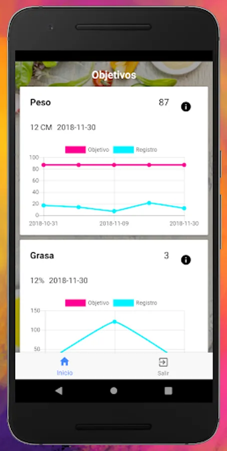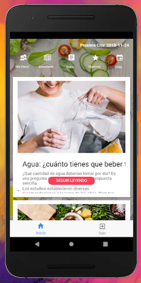 • File: You can view the file you have with your nutritionist, and if you change to another nutritionist who uses our software, your information will be available to him.