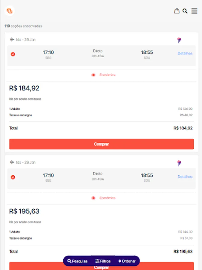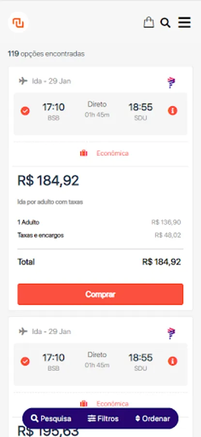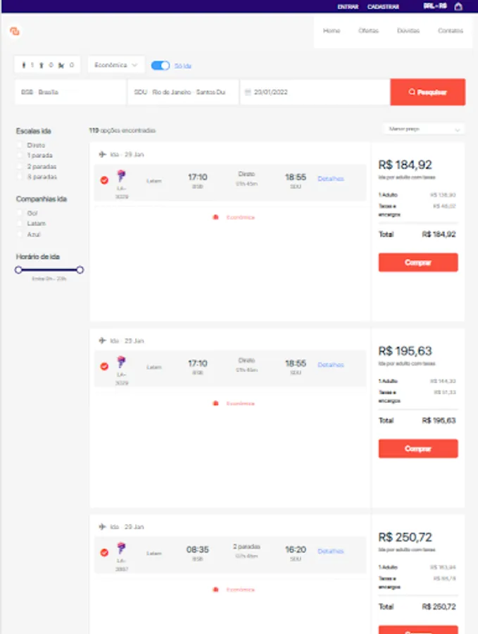 Compare airfare prices offered by the country's main airlines and save more.