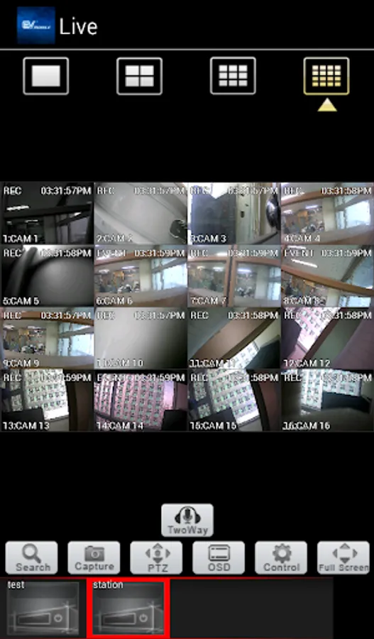 2. Live View : Supporting split-screen for 4ch, 9ch, and 16ch