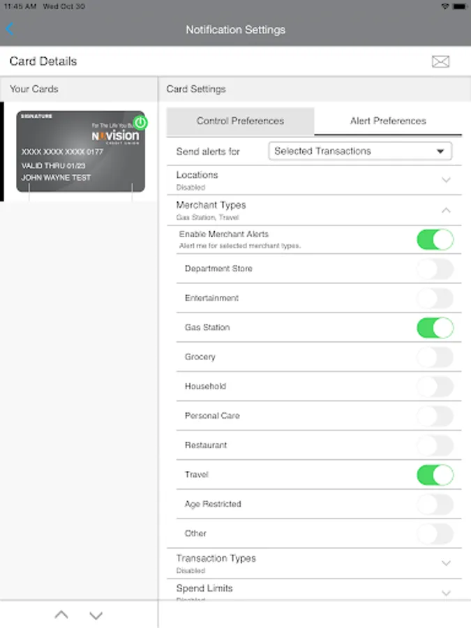 2. Set alerts, controls, or restrictions on your Nuvision cards